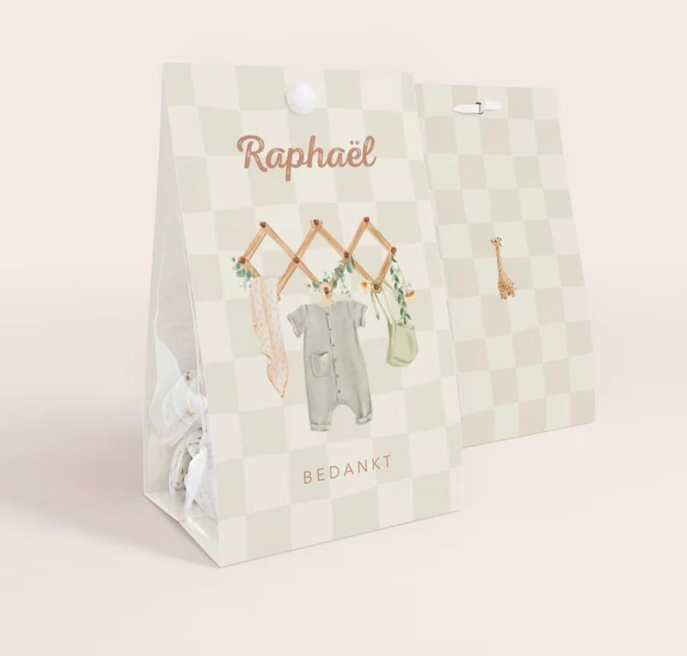 Snoepzakje met babykleren aan kapstok